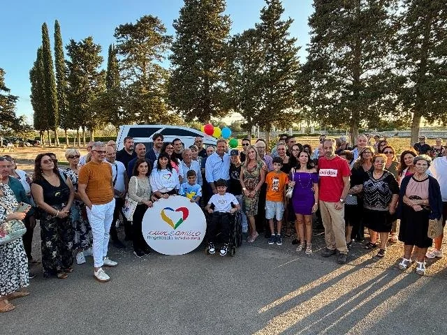 La Carovana della Solidarietà di Cuore Amico ha fatto tappa a Cursi, al Santuario della Madonna SS.ma dell’Abbondanza. Dopo la Santa Messa, tra la commozione e la gioia della comunità, è stata donata un’auto attrezzata ad Andrea Turco, 17 anni, affetto da Distrofia Muscolare di Duchenne. Con lui c’erano mamma Cristina e papà Pierluigi. L’auto, benedetta da don Gigi, è diventata subito il simbolo di un abbraccio collettivo, davanti ai tanti concittadini accorsi per condividere questo momento.