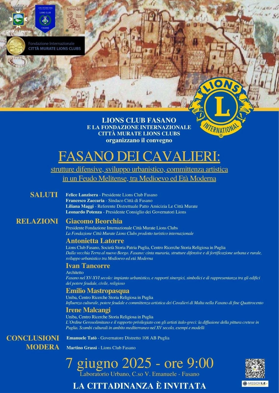 Il Lions Club Fasano promuove un convegno su “Fasano dei Cavalieri”