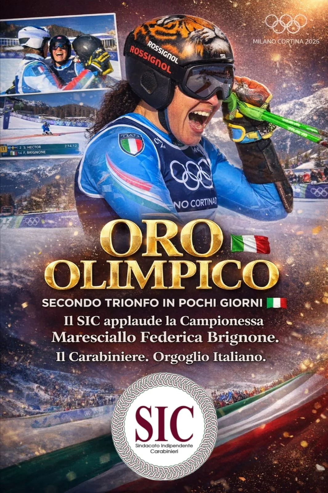 Il Sindacato Indipendente Carabinieri esprime le più vive e sentite congratulazioni al Maresciallo Federica Brignone, atleta del Gruppo Sportivo Carabinieri, per la straordinaria medaglia d’oro conquistata nello slalom gigante alle Olimpiadi Invernali Milano-Cortina 2026.