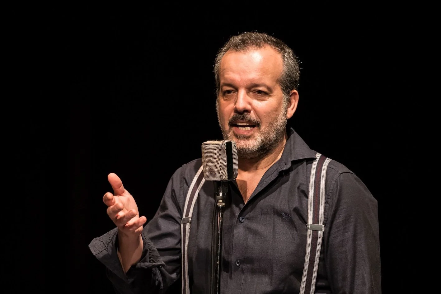 Prodotto da Permar Compagnia Mario Perrotta – Emilia Romagna Teatro ERT / Teatro Nazionale, con il contributo di Regione Emilia Romagna e Comune di Medicina, in collaborazione con Teatro Ruggeri di Guastalla, Teatro Asioli di Correggio e Duel, Nel Blu vede in scena, accanto a Perrotta (collaborazione alla regia di Paola Roscioli), i musicisti Vanni Crociani, Massimo Marches e Giuseppe Franchellucci. Insieme arrangiano e costruiscono un tessuto sonoro che diventa estensione della voce e delle canzoni di Modugno: quella dimensione che le parole non riescono a esprimere, ma che la musica continua a far vibrare. Al centro, la figura di Modugno come incarnazione di un tempo sospeso tra macerie e speranza. «C’è stato un momento in cui il nostro Paese – e una gran parte di mondo – è apparso felice», sottolinea Mario Perrotta. «Sono gli anni a cavallo del 1958, subito prima e subito dopo l’inizio del boom economico. Se c’è un uomo che incarna quella spinta vitale è Domenico Modugno: con una sola canzone rende l’Occidente felice di esistere. Eppure sapeva di lavorare sull’effimero, sull’impalpabile, ma si ostinava a crederci: “Io voglio cantare la felicità. Anche se non esiste, mi voglio illudere che esista, devo credere che esista”. Nel Blu è il racconto intimo di un uomo nato in una terra dimenticata – quella Puglia rimasta a lungo ai margini – che parte per “fare l’attore” e si ritrova a insegnare al mondo a volare. Proverò ad accostare la sua storia con tutta la cura possibile, per non tradire un uomo della mia terra e la mia terra stessa. Un’esistenza guascona e testarda in cui i musicisti in scena sono l’altra voce di Modugno, quella che le parole non riescono a rappresentare». Mario Perrotta è tra i protagonisti del teatro di narrazione italiano. Laureato in filosofia a Bologna, nel 1994 ha co-fondato la Compagnia del Teatro dell’Argine, firmando negli anni spettacoli e progetti capaci di intrecciare memoria civile e scrittura scenica. Ha ricevuto oltre dodici candidature ai Premi Ubu, vincendone cinque, tra cui Miglior attore protagonista (2013) e Miglior nuovo testo italiano (2022).