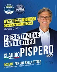 Sabato 18 aprile 2026, alle ore 18.30, presso il Cinema Aurora di Tricase, in via Stella d’Italia 34, si terrà la presentazione ufficiale della candidatura di Claudio Pispero alla carica di sindaco della città di Tricase, in vista delle elezioni amministrative del 24 e 25 maggio 2026.