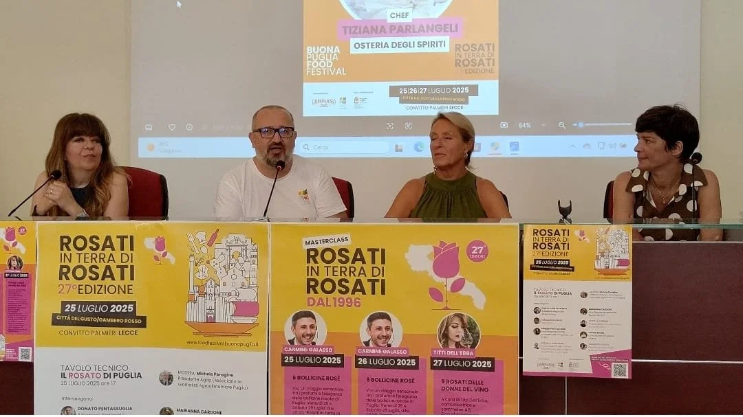 Un format di successo organizzato in partnership con Città del Gusto Lecce – Gambero Rosso Academy, AIS Associazione Italiana Sommelier Puglia e Donne Del Vino Puglia. <<È un grande onore per me essere qui oggi, in occasione del Buona Puglia Food Festival, per presentare la masterclass dedicata ai vini rosati pugliesi – ha aggiunto Titti Dell’Erba, sommelier e associata Donne del Vino Puglia - un viaggio sensoriale e territoriale che attraversa la regione da nord a sud, con un filo conduttore chiaro: il talento e la visione delle Donne del Vino Puglia. I rosati pugliesi sono molto più di una tendenza: sono parte del nostro patrimonio identitario, espressione autentica dei vitigni autoctoni e dei territori in cui nascono>>. Una sede storica di Lecce, un vero e proprio gioiello com’è il Convitto Palmieri, sede anche di Gambero Rosso Academy Lecce, ospiterà la manifestazione. <<E’ davvero una bellissima occasione per gustare l’eccellenza del nostro vastissimo territorio delle Puglie – ha concluso Fiorella Perrone, responsabile Città del Gusto Gambero Rosso Academy Lecce - proprio nella città di Lecce dove c’è la nostra sede, grazie alla partenariato pubblico – privato con la Provincia. E’ importante sottolineare come la realizzazione di questi eventi sia possibile grazie alle sinergie che con si creano tra enti diversi, in questo caso non solo tra Gambero Rosso e l’associazione Buona Puglia, ma anche con il Comune, la Regione e la Provincia di Lecce. La promozione del nostro territorio avviene anche grazie a tutto questo>>.