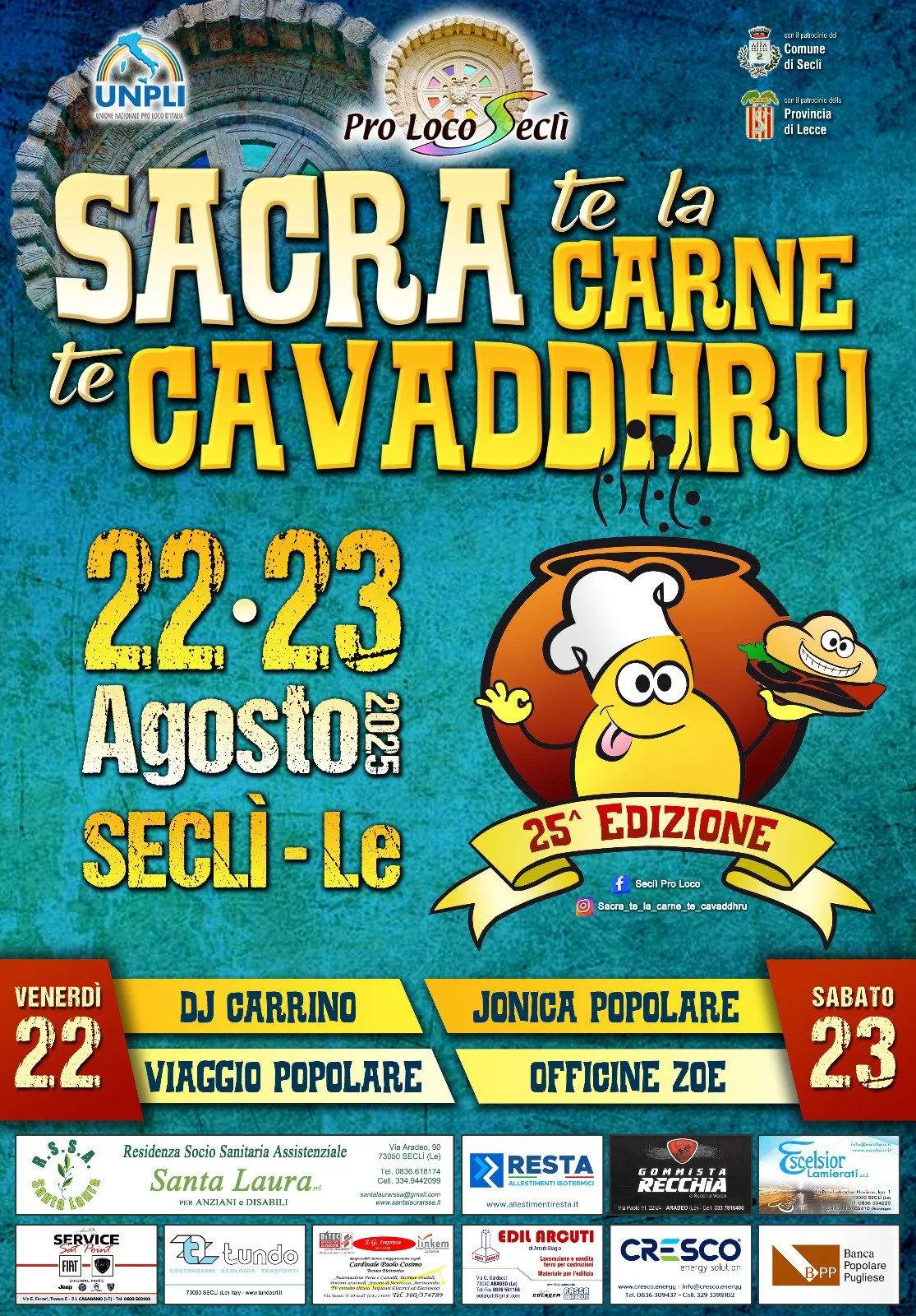 Ci sono feste che sono più di un’occasione per ritrovarsi, più di un semplice rito estivo scandito da musica e tavolate imbandite. Sono momenti in cui un’intera comunità riscopre se stessa, riconosce le proprie radici, riafferma la propria identità. È questo il senso profondo della Sagra te la carne te cavaddhru che torna, per la sua XXV edizione, nel cuore del borgo antico di Seclì il 22 e 23 agosto.