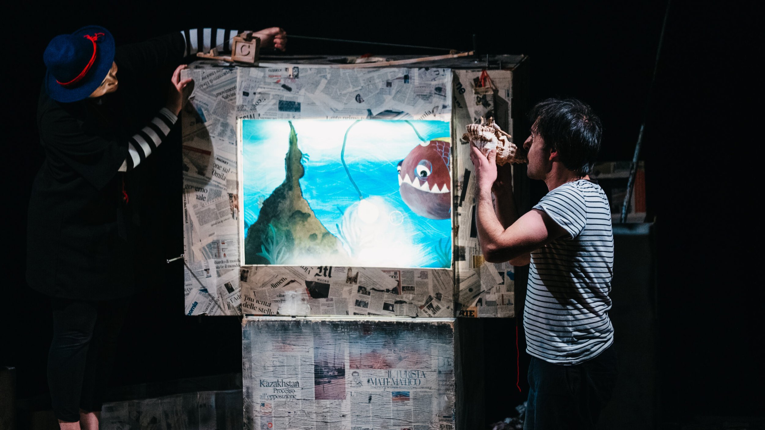 Giocare con la carta, smarrirsi nei sogni, intrecciare segni. Una scatola diventa lo spazio in cui ogni bambino può inventare la propria storia: può trasformarsi in mare, cielo, costellazione. È un rifugio in cui custodire segreti, accogliere desideri e dare forma all’immaginazione. In scena due attori, un pupazzo e un racconto che si snoda tra rime e colori. Attraverso l’invenzione del cartometraggio prende vita un sogno lungo trentacinque metri: la storia di un bambino – o forse di molti – alle prese con una montagna di scatole. Sarà la fantasia a condurlo verso luoghi nascosti e sorprendenti, dove tutto diventa possibile. Fondata da Ottavia Perrone e Francesco Cortese, ZeroMeccanico Teatro è una compagnia attiva nella produzione di spettacoli, nella curatela di festival e nella realizzazione di laboratori e percorsi formativi. Con base a Gallipoli, sviluppa progetti rivolti a bambini, ragazzi e adulti, con una particolare attenzione alla diffusione e alla valorizzazione della cultura teatrale contemporanea.